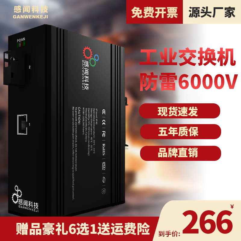 Sense Gigabit 1 Optical PoE PoE power supply optional for the first electric interface industrial Ethernet switch Optical fiber transceiver network monitoring special switch for lightning-proof black stacking package