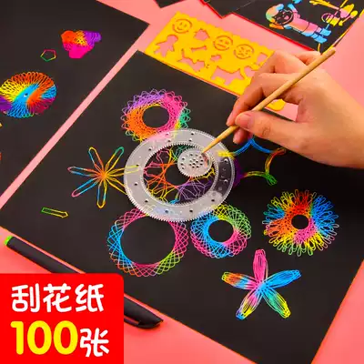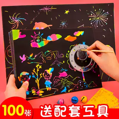 100 scraping paper set 16K color graffiti paper painting paper drawing paper black scraping paper drawing scrape painting paper colorful color changing Children Art a4 bamboo pen handmade creative painting kindergarten hanging painting paper