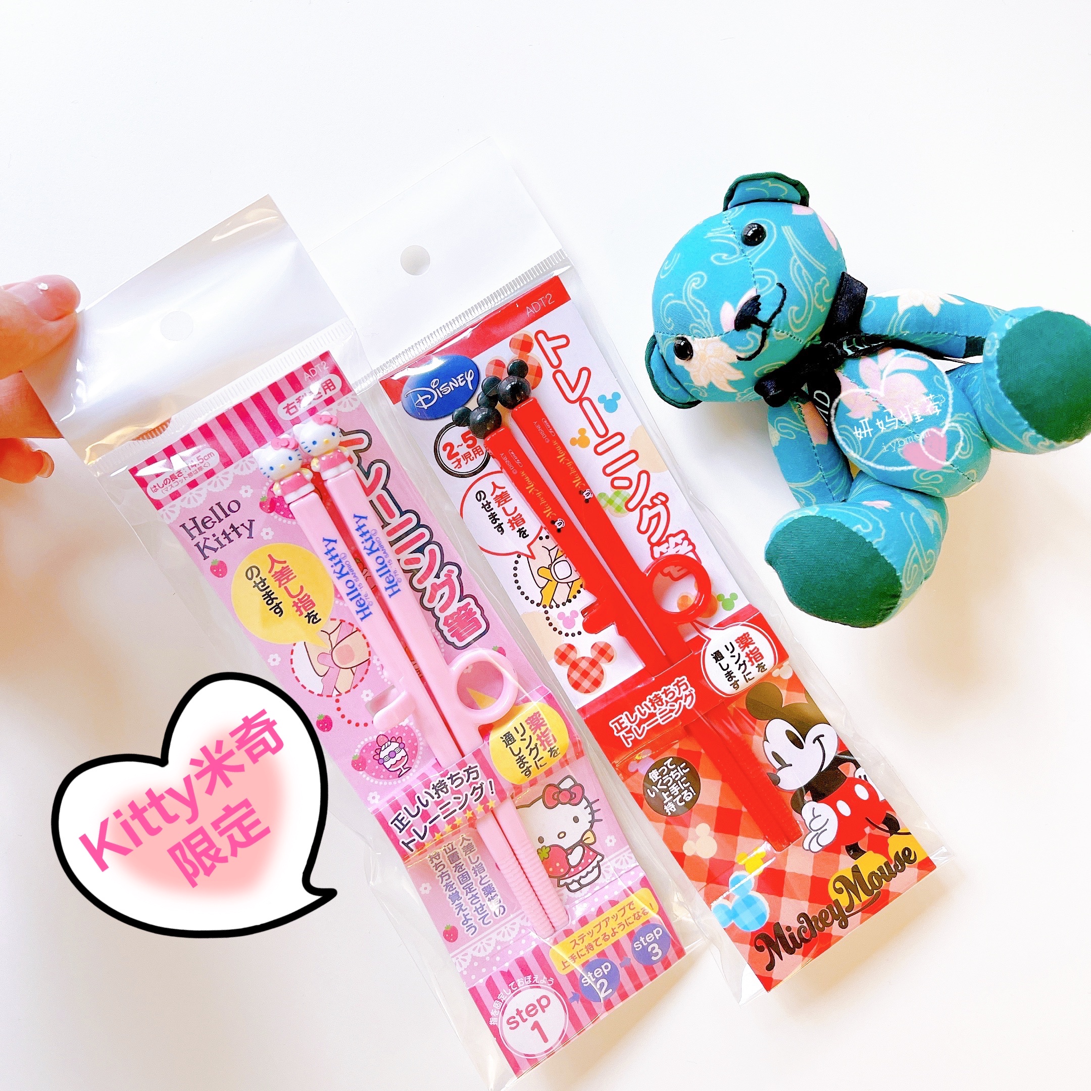 Japan's Skater baby infant child training chopsticks Mickey KITTY Exercise learning chopstick right hand 2-3-4 years old