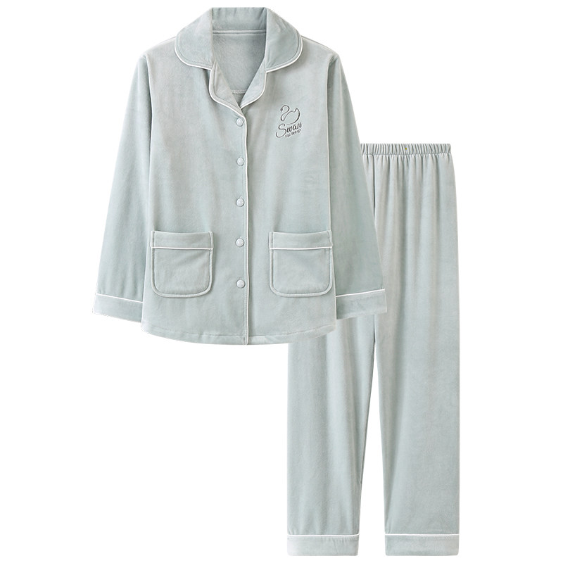 Island velvet pajamas women's thin spring and autumn long-sleeved coral fleece warm cardigan large size home service suit can be worn outside