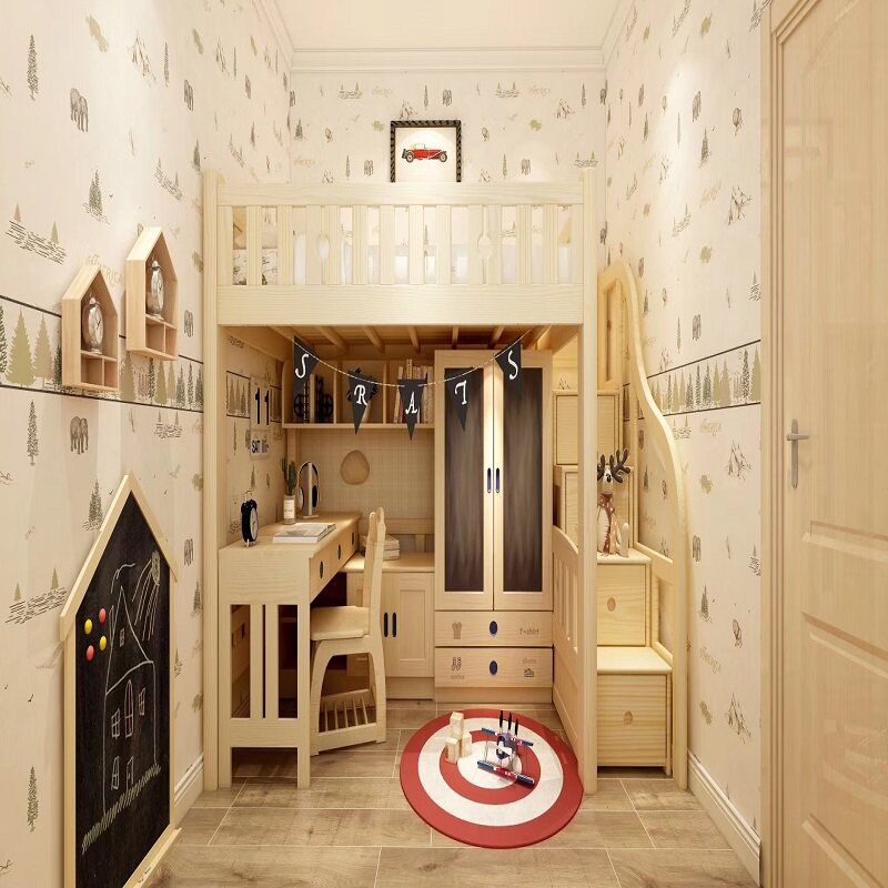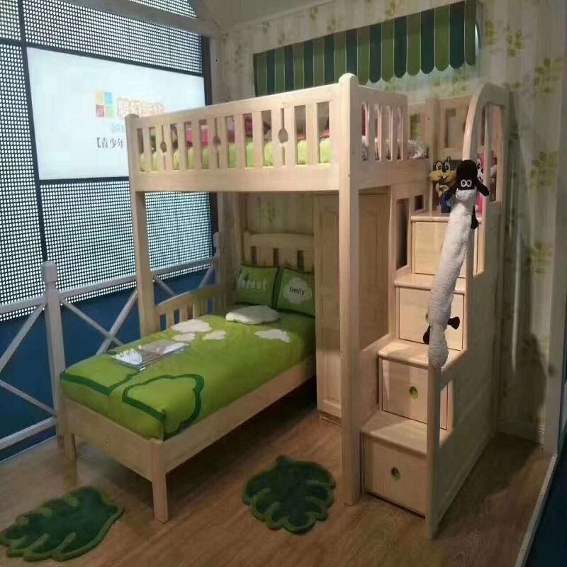 Songbu Kingdom solid wood men and women children's step function bed elevated bed integrated storage safe and environmentally friendly children's bed