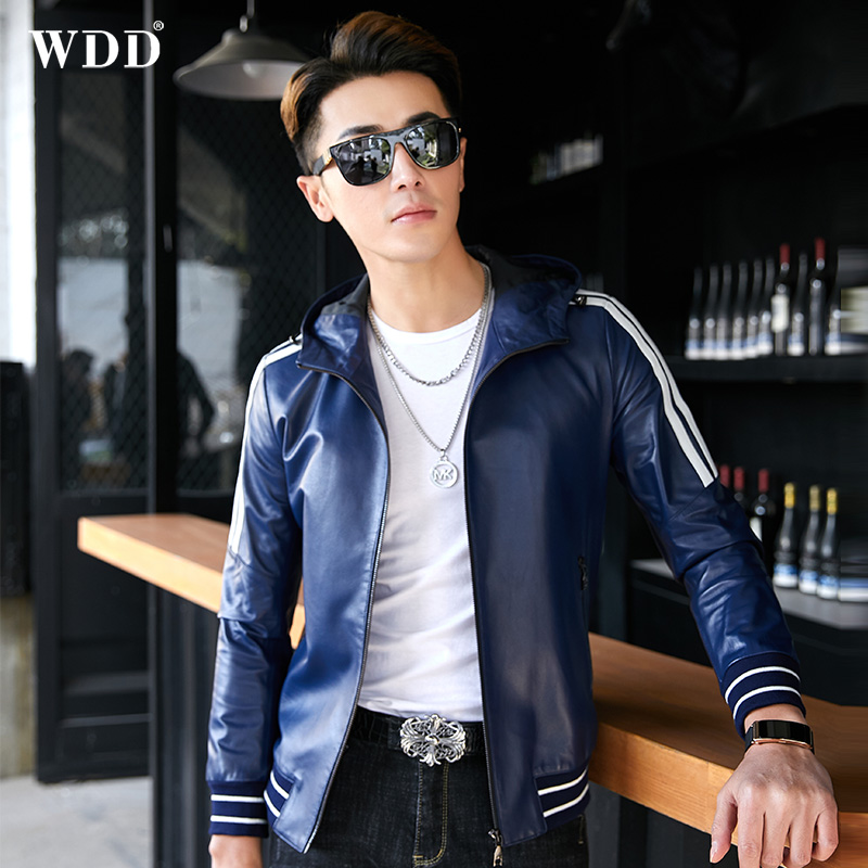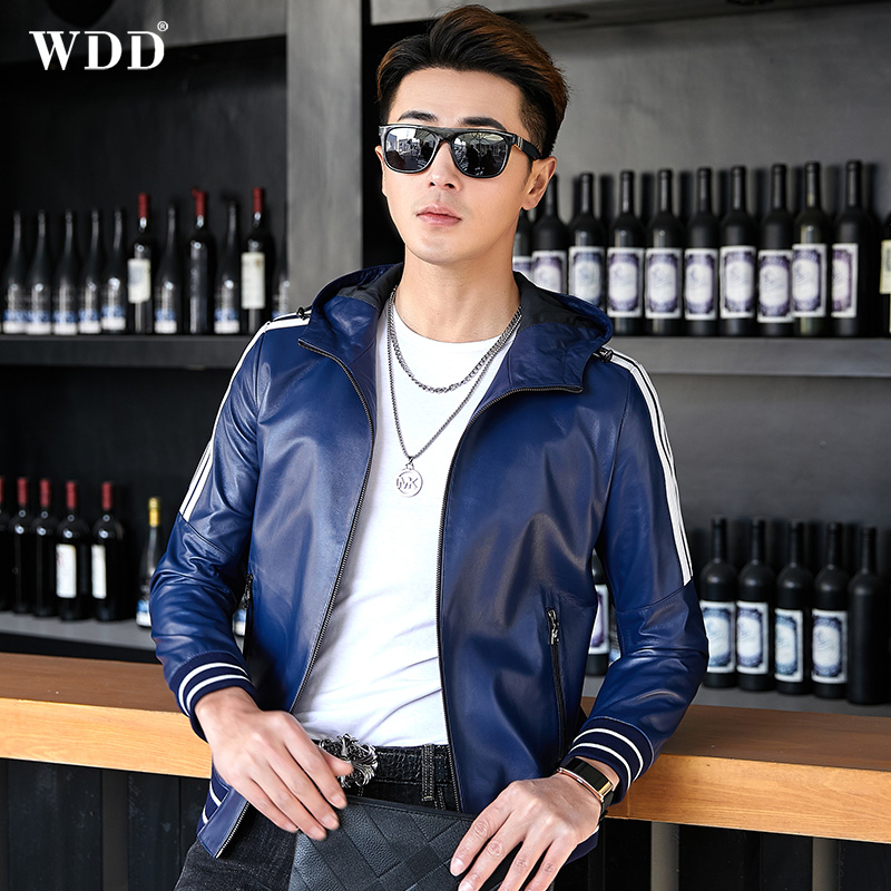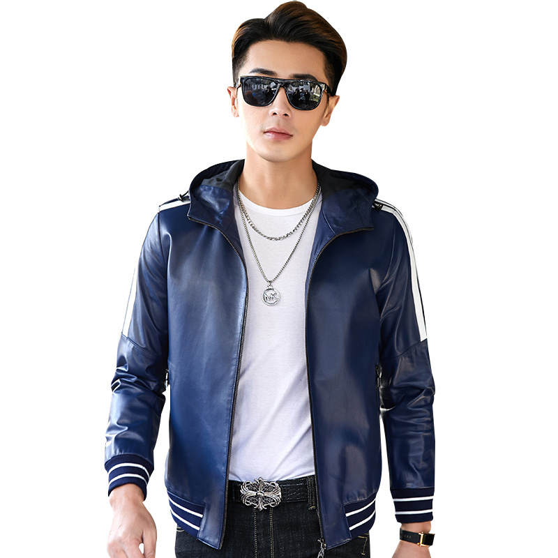 Henning genuine leather fur coat men's short section hat 2022 spring new youth fashion trends sheep leather jacket jacket