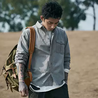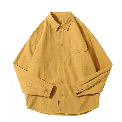Furnace Spring and Autumn New pocket decoration shirt men's solid color lapel shirt student urban street jersey coat