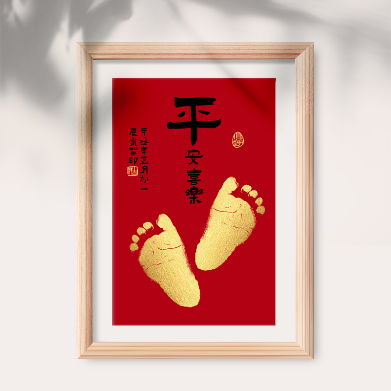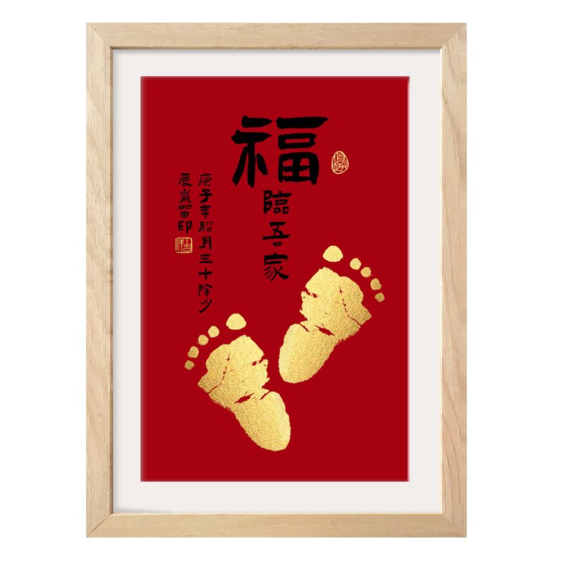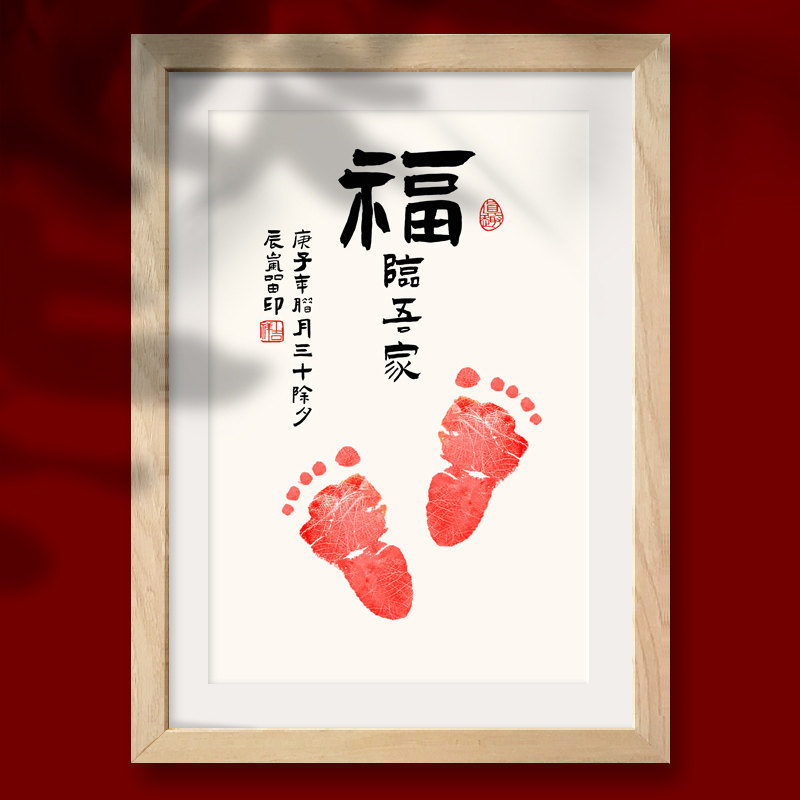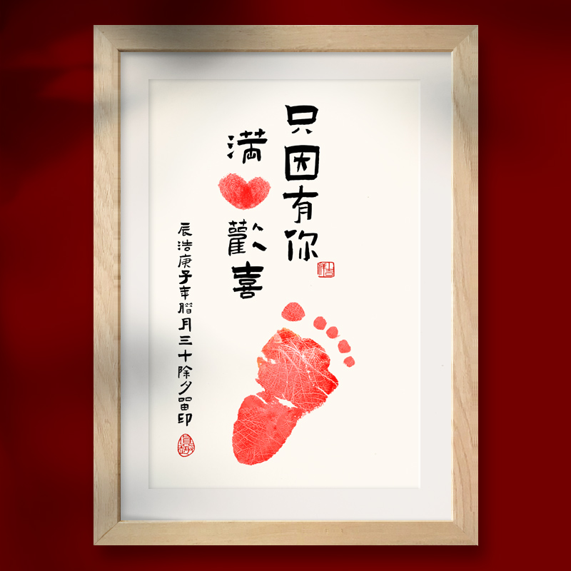Calligraphy baby baby hand and foot print 100 days full moon one year old hand and foot print calligraphy painting commemorative solid wood photo frame fetal estrus deep