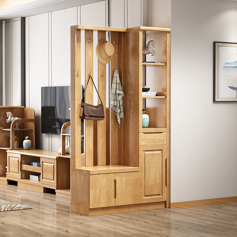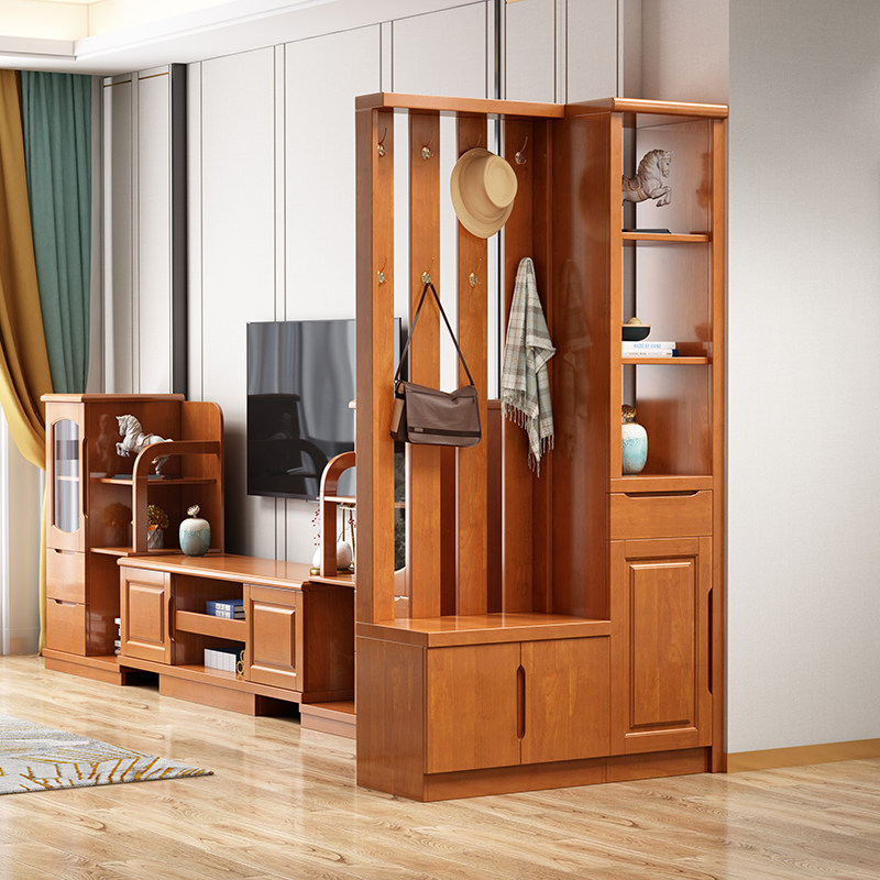 New Chinese style small apartment solid wood hall cabinet hanging wardrobe multifunctional hall cabinet entrance shoe cabinet porch cabinet storage cabinet - Taobao