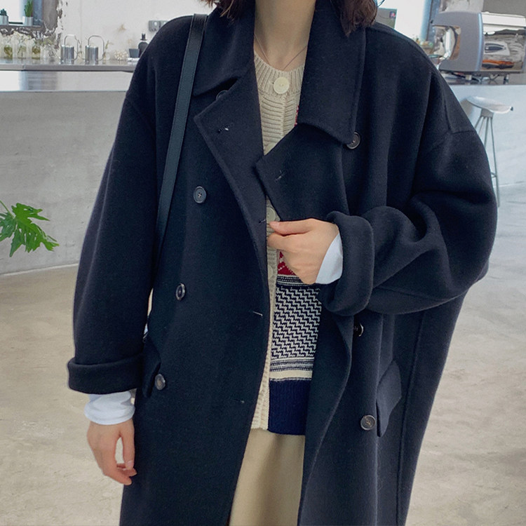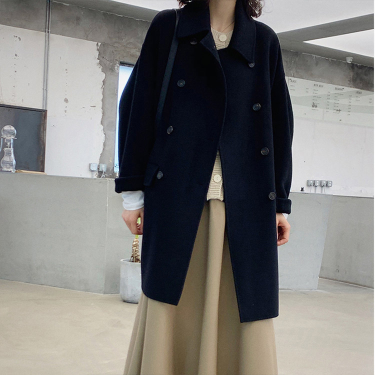 2021 new high-end camel double-sided cashmere coat women's short loose small size tweed coat