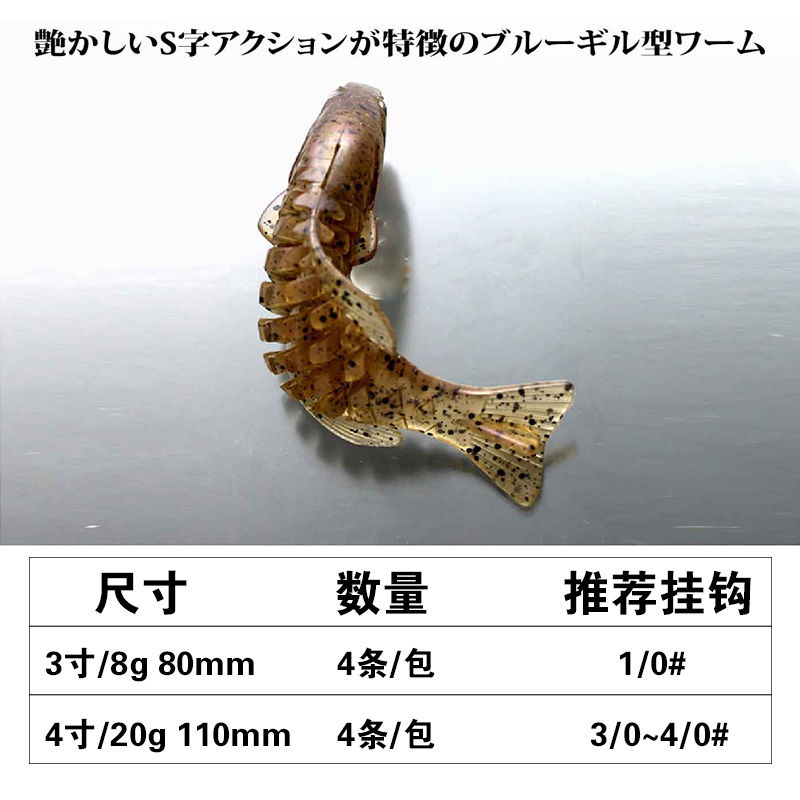 Japan Changji Soft Erbium Leaf Bathing Fish 8 gr 3 inch Bait Soft Worm multi-section Fish False Bait Software Fish Bass fish mandarin fish soft bait