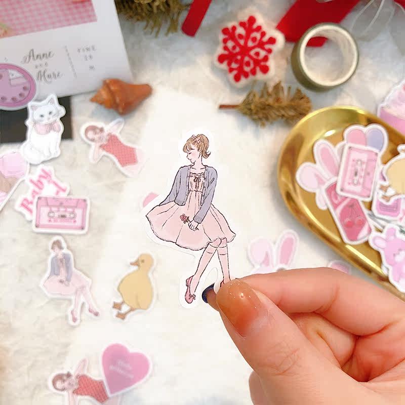 Holiday Girl Handbook Sticker Set Sticker Series and Paper Sticker Literary Girl Heart Cute Cartoon Material Mobile Phone Water Cup Sticker Handbook Journal Photo Album DIY Sticker Character Creativity