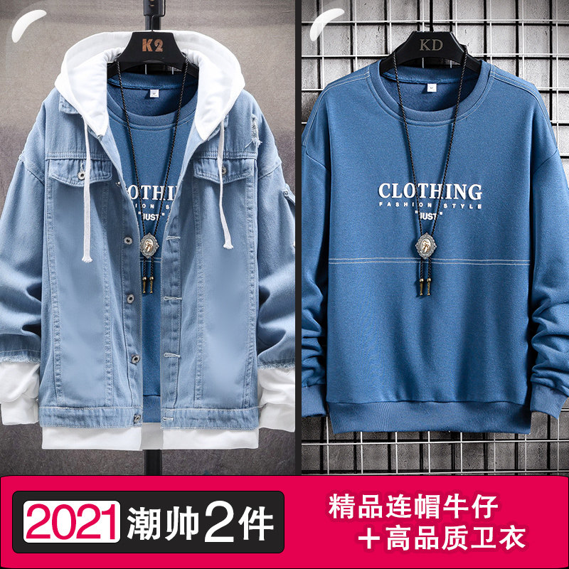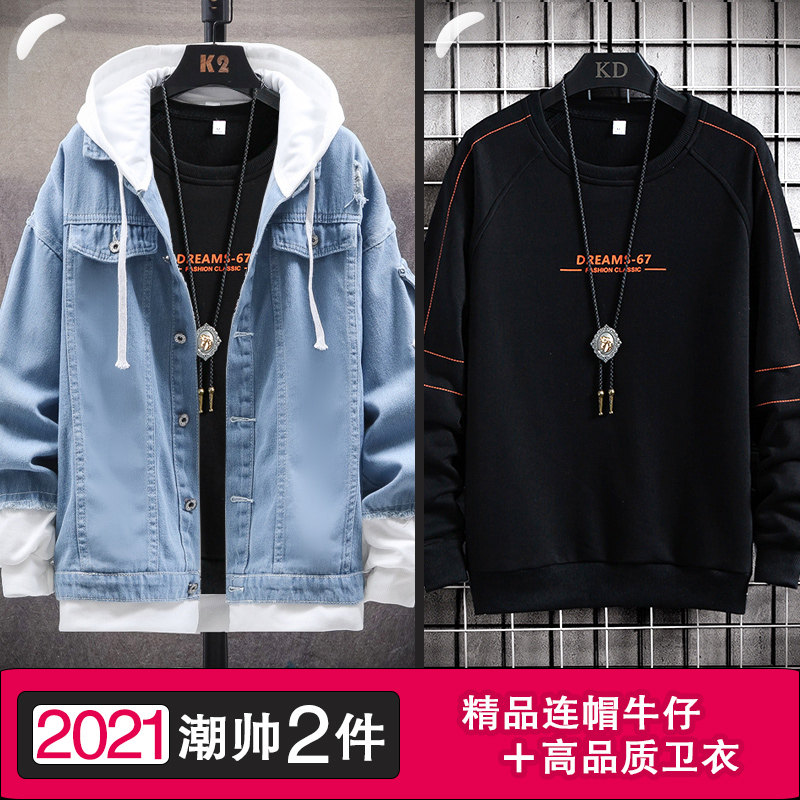 Spring Denim Jacket Men's Spring Autumn Loose Trends Han Edition Tide Cards New Spring Dress Men's Casual Jackets Clothes
