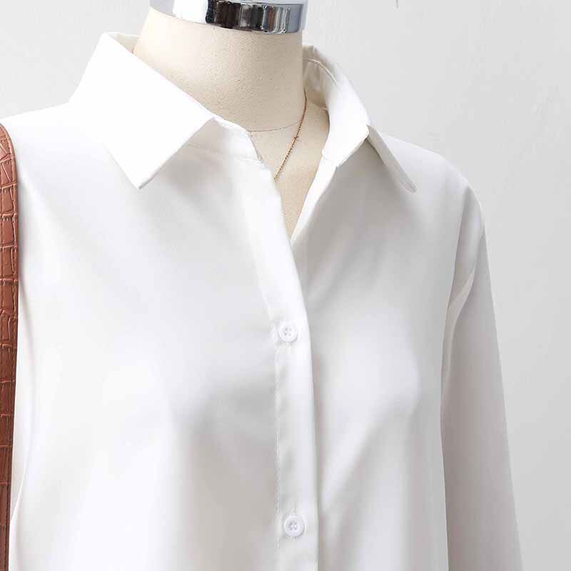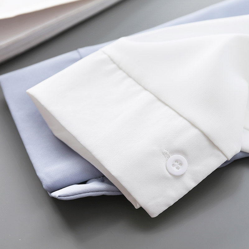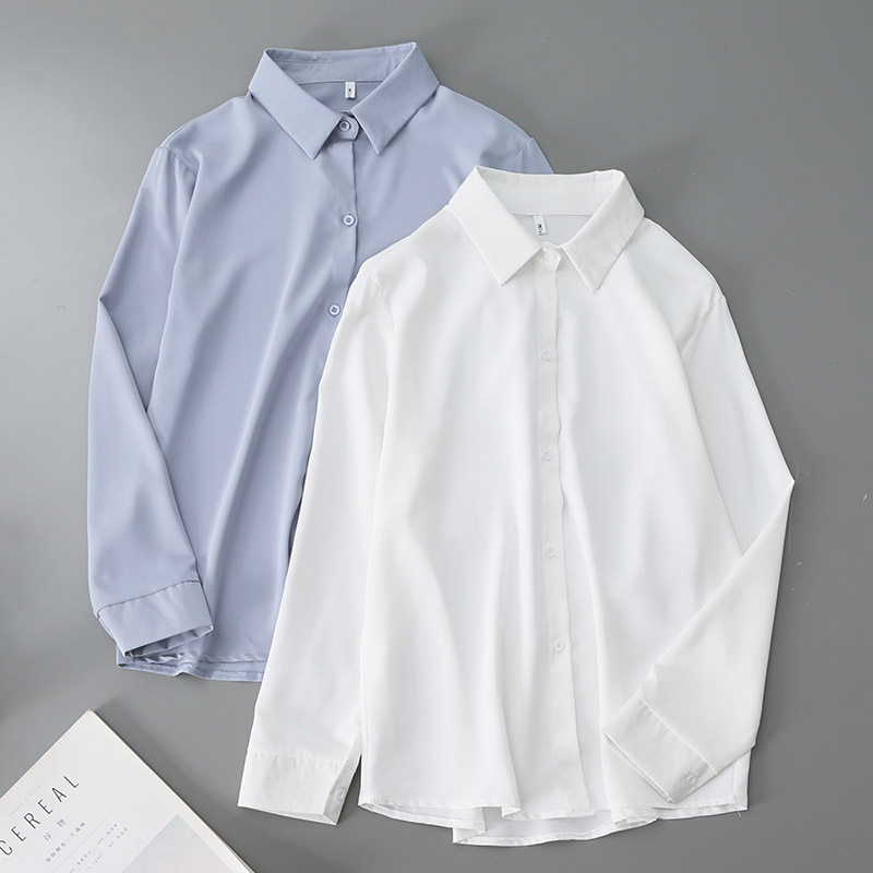 Blue Chiffon shirt women's spring new Korean version wild loose professional OL simple temperament lapel long-sleeved shirt