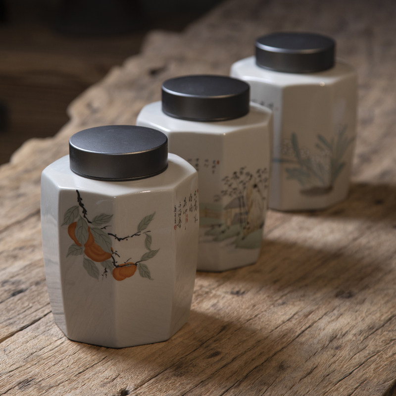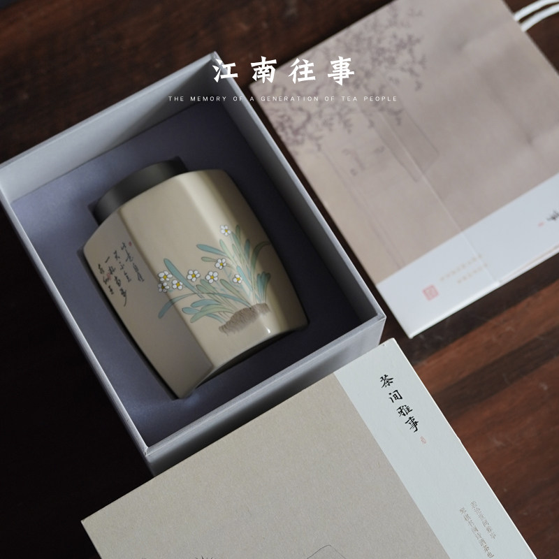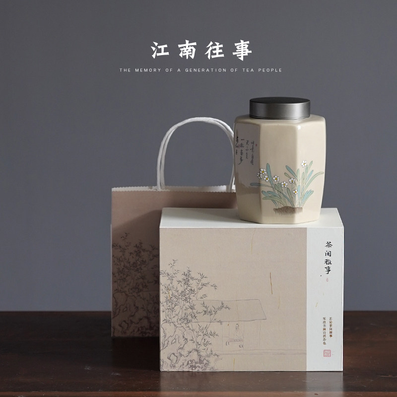 Grass gray large tea canister gift box Household high - end Pu - yu tea sealing tank storage tank moisture - proof ceramic cans