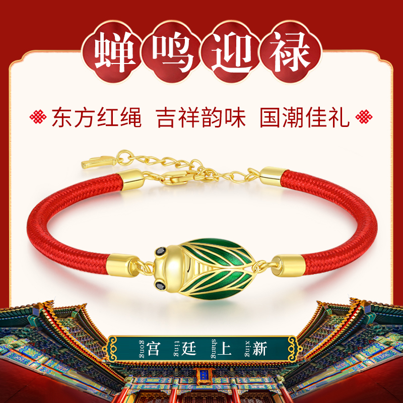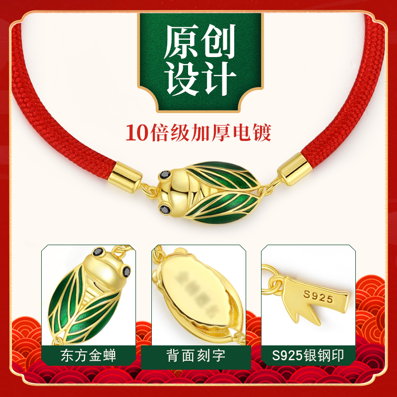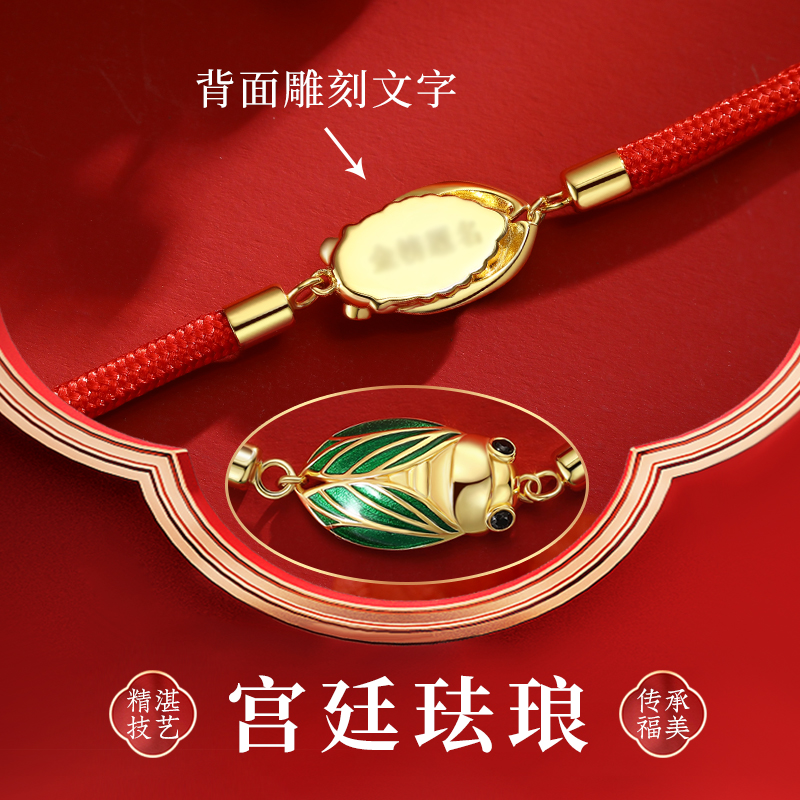 Cicada Hetian Jade Pendant-Retro Gift Box Upgraded Hetian Jade Golden Cicada Set (gift gift box with immortal flowers) Gold List inscribed hand and tower ornaments Fish Leaping Dragon Gate Necklace Set Hetian Jade Golden Cicada Red
