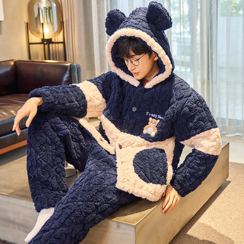 Teen pajamas boy autumn and winter thickening boy coral velvet three layers of coral wool clothes