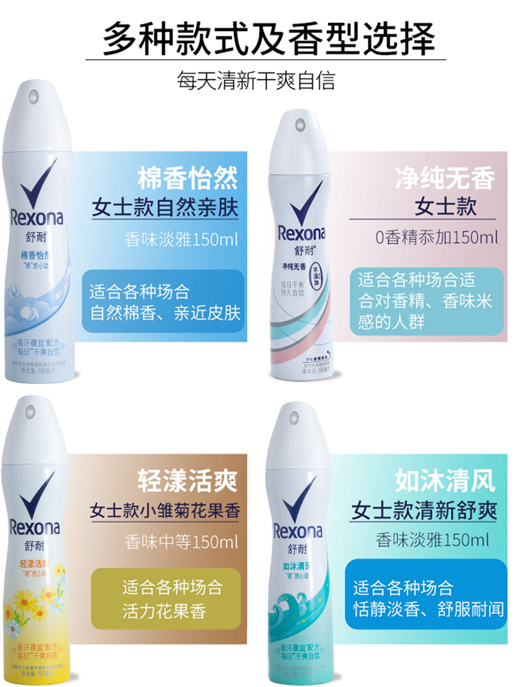 Rexona Antiperspirant Spray Women's Lasting Light Fragrance New Refreshing Body Cream to Eliminate Underarm Odor