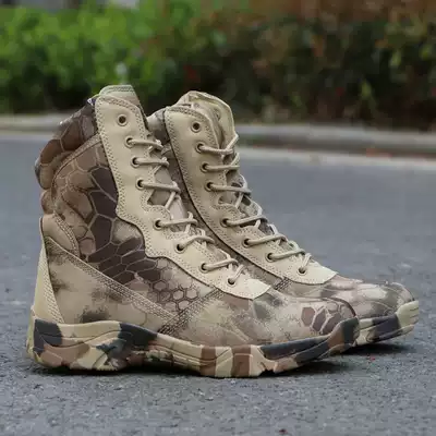 Summer python pattern color ultra-light combat boots Special forces high-barrel tactical boots Men's security boots Marine boots mountaineering shoes boots