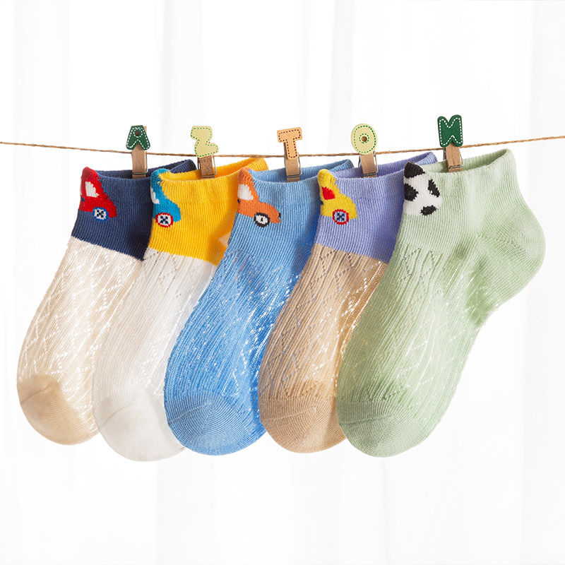 Boys socks spring and summer pure cotton children's mesh socks breathable baby summer thin section girls boy cartoon car socks