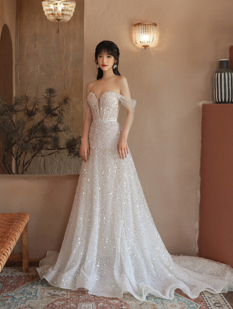 Straight Shoulder Light Lavish Wedding Dress 2022 New Sensuo Princess Super Fairy Dream Luxury luxury Engagement Banquet Evening Dress