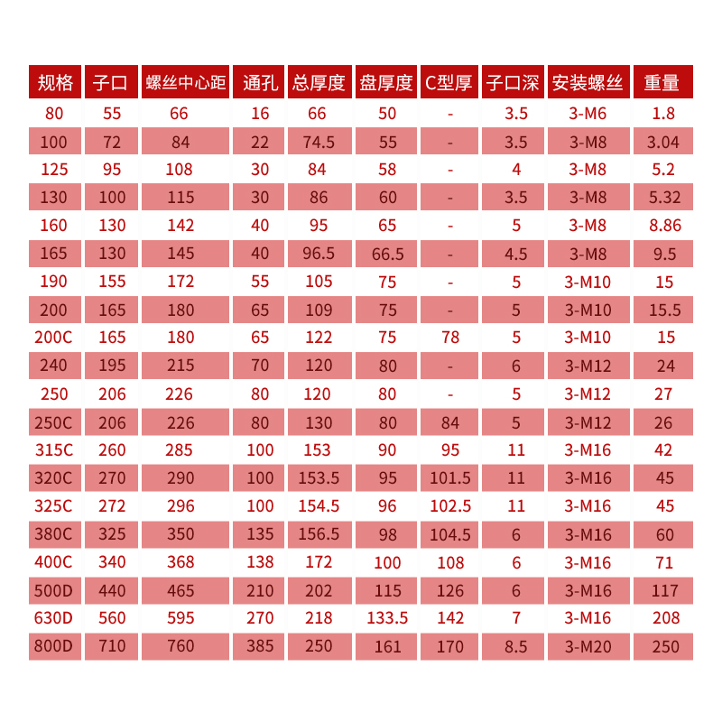 Chuck diameter 80mm Chuck diameter 100mm Chuck diameter 125mm Chuck diameter 130mm Chuck diameter 160mm Chuck diameter 200mm Chuck diameter 250