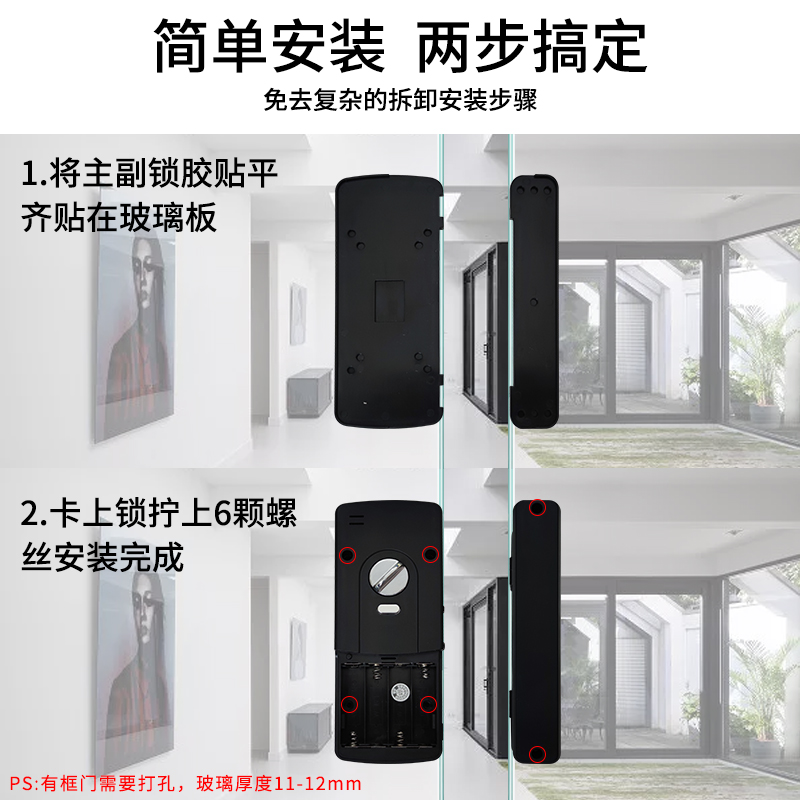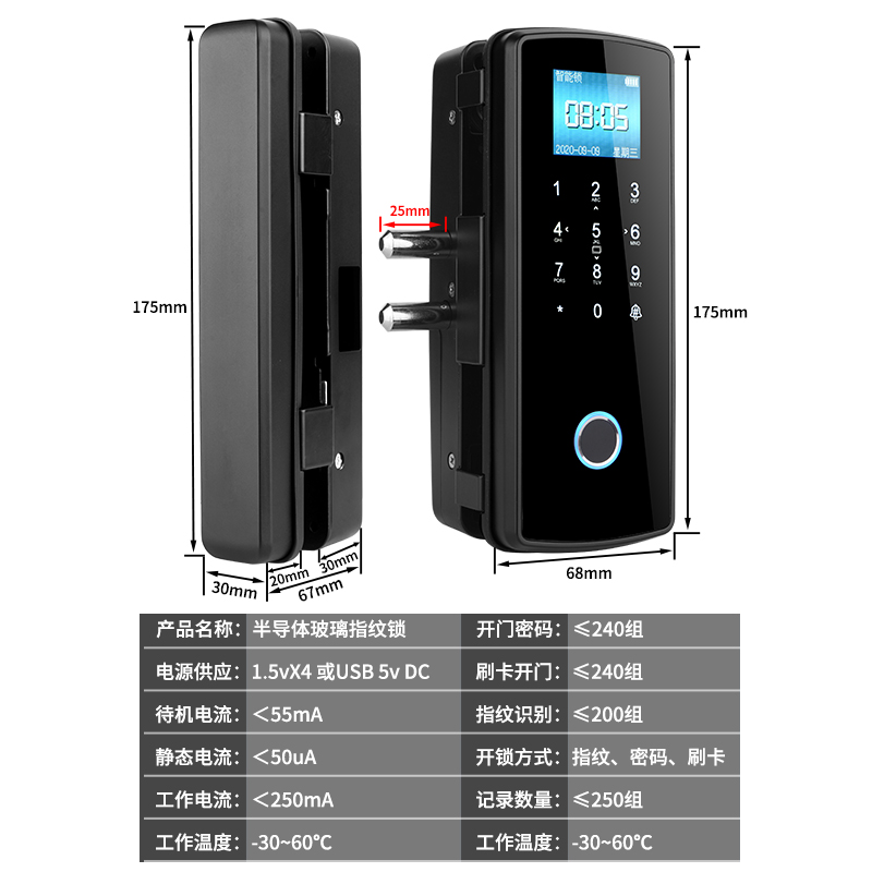 Glass fingerprint lock Office semiconductor fingerprint lock Wiring-free open cell battery intelligent electronic access control lock