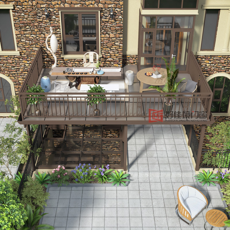 Villa platform terrace sun room broken bridge aluminum alloy aluminum clad wood soundproof doors and windows anti-theft window screen integrated sealing balcony