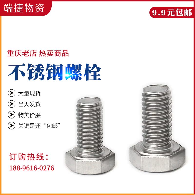 Outer hexagonal bolt 304 stainless steel screw screw 12mm--200 lengthened flat pad spring washer screw nut