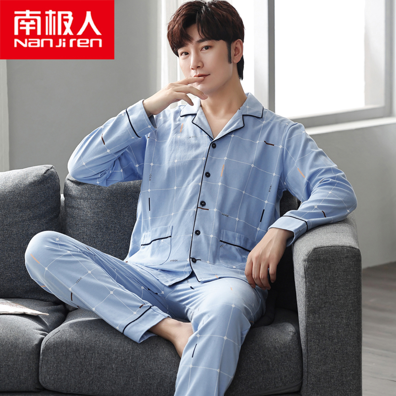 South Pole pyjamas Men's spring and autumn season Long sleeves pure cotton autumn and winter male style can be outworn full cotton thin family home suit suit