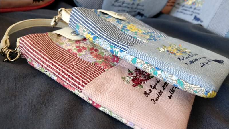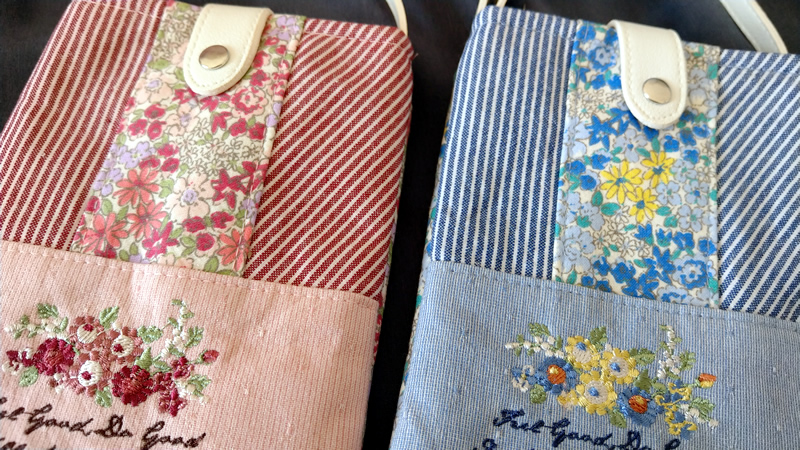 Exported to Japan 21 spring and summer new flower handle striped embroidery hand bag mobile phone bag mobile charging storage hand bag