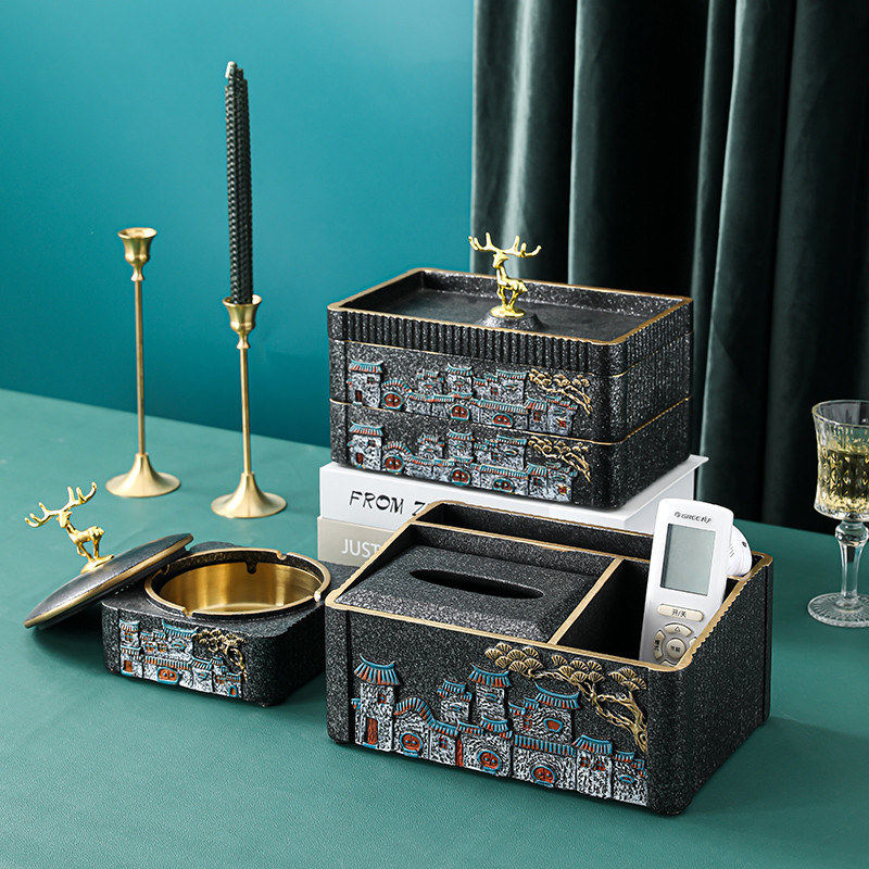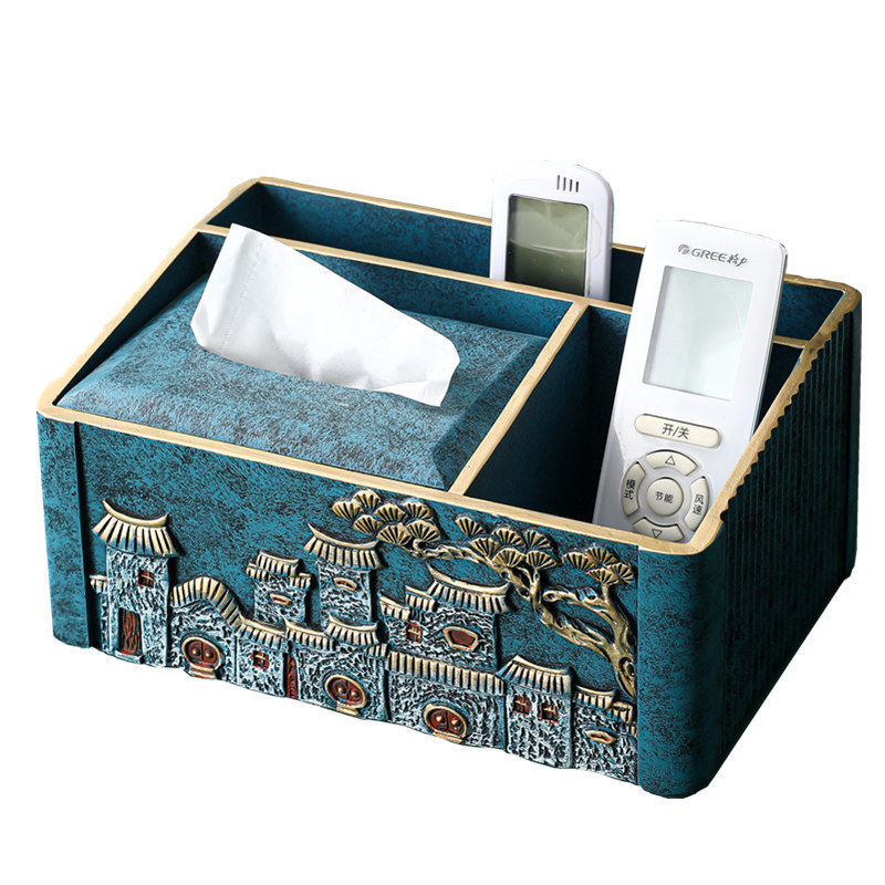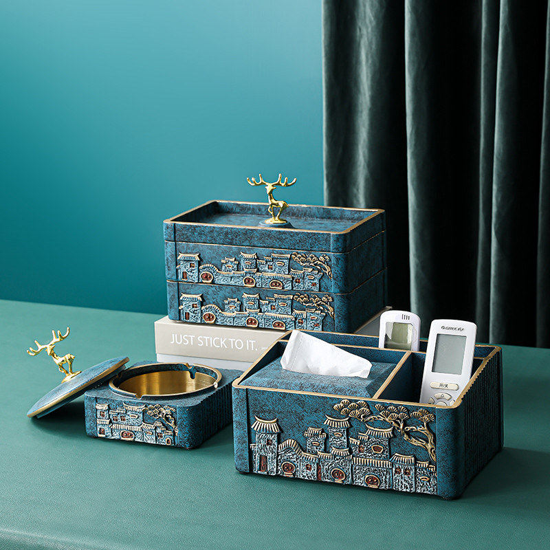 Three-compartment storage tissue box on the eaves-light luxury blue Two-compartment storage tissue box on the eaves-light luxury blue Double-layer dried fruit plate on the eaves-light luxury blue Two-eared fruit plate on the eaves-light luxury blue Eaves with smoke cover