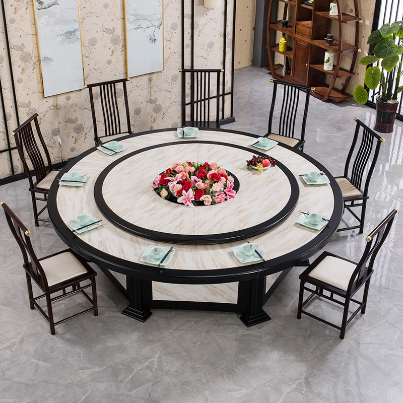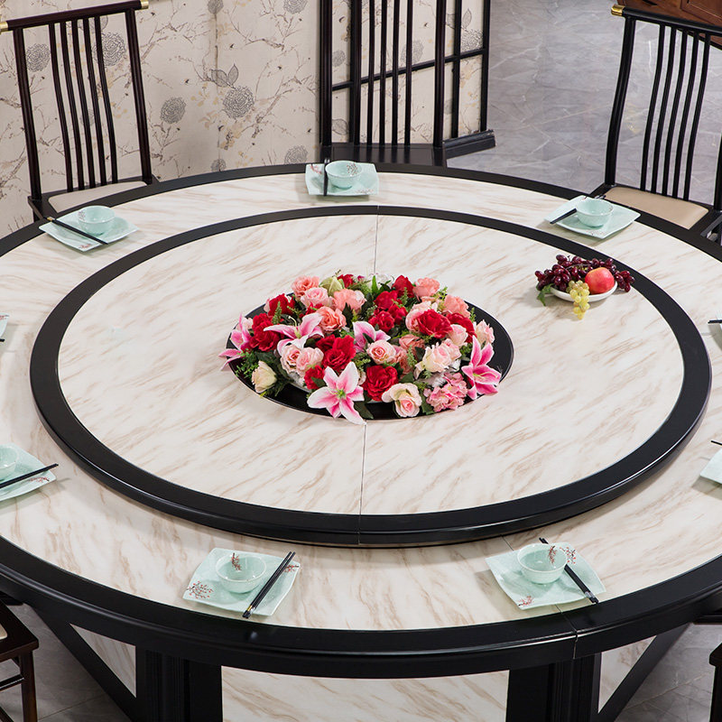 New Chinese hotel dining table Large round table Hotel box 10 people 15 people 20 people Electric turntable automatic table and chair combination