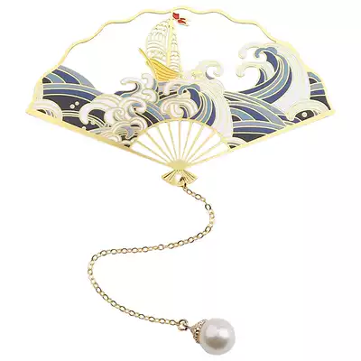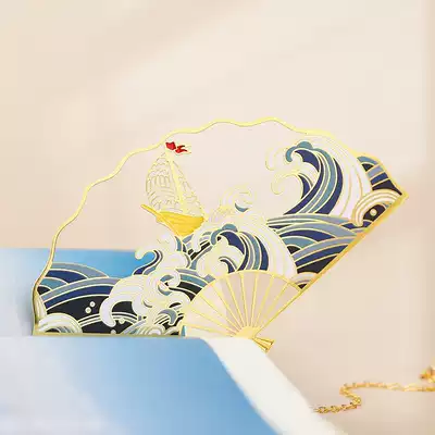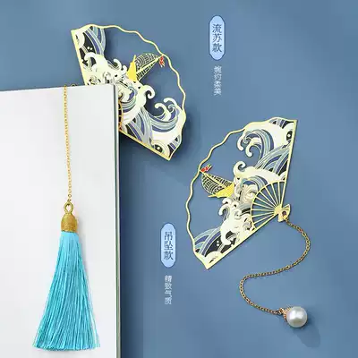 Metal Brass Folding Fan Bookmark Hollow Literary Birthday Gift Female Cute Cartoon Classical Chinese Style Forbidden City Cultural and Creative Students with Tassel Creative hipster Ancient Style Gift Souvenirs