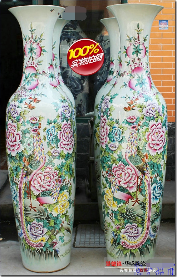 Jingdezhen Ceramic Ware Ground Large Vase Antique Pink Hand Painted Phoenix Thyme for a large swing in the home living room