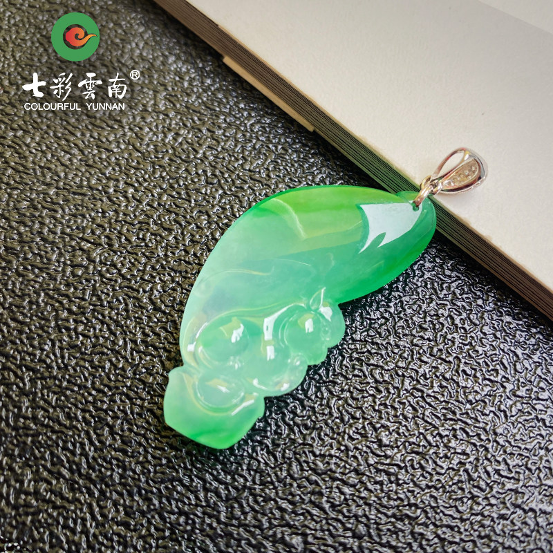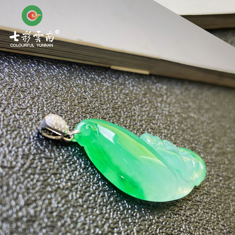 Colorful Yunnan Myanmar A goods natural jade belt certificate high ice species full of glue full of green inlaid Ruyi pendant