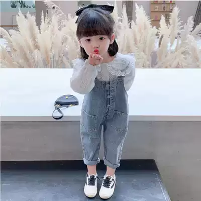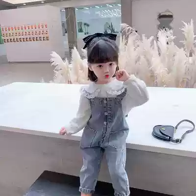 Girl autumn set two-piece set 2021 New Korean version of foreign style Net Red Children Baby denim Baby Baby Baby bag pants spring and autumn