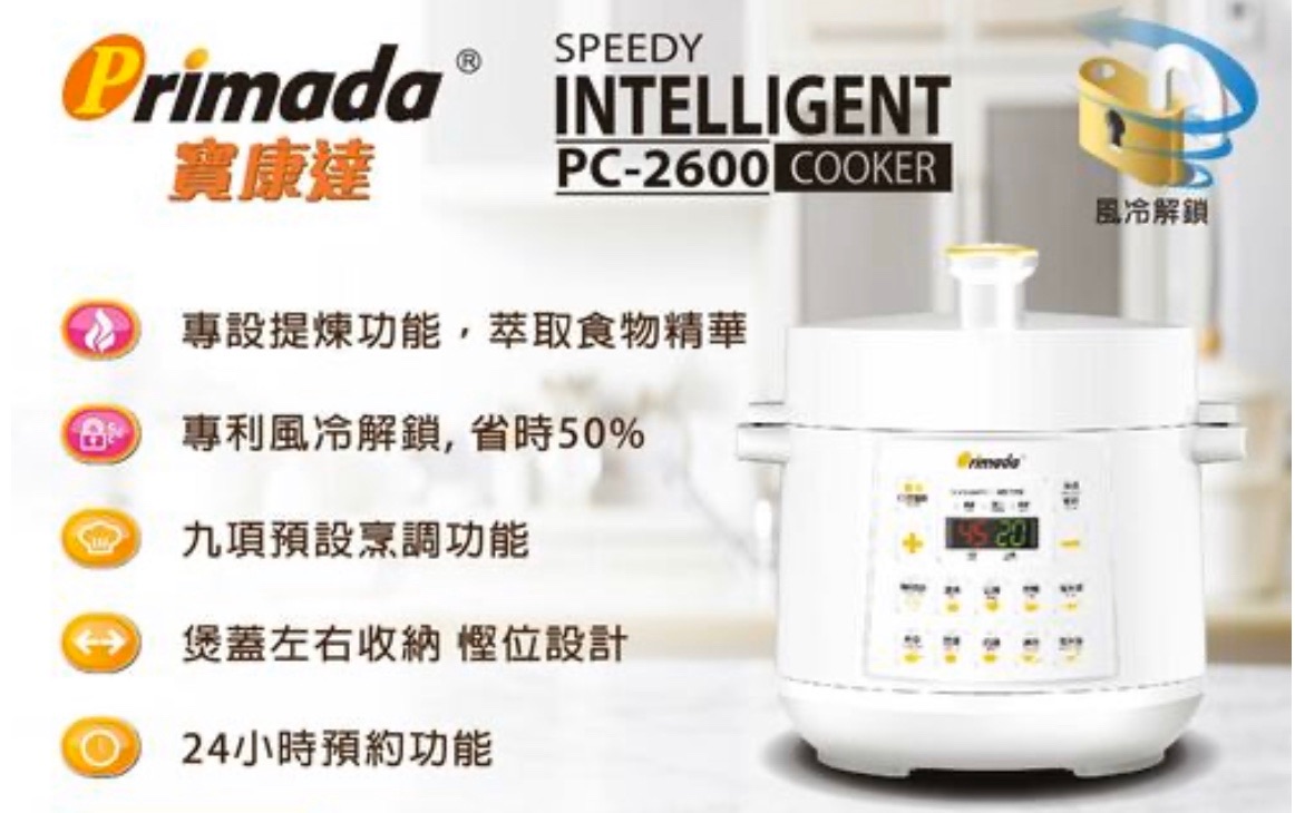 Primada PC2600 Air-cooled Fast Intelligent Saucepan Inner Pan Diameter 17cm Nine Items Preset Cooking Function 2 5L