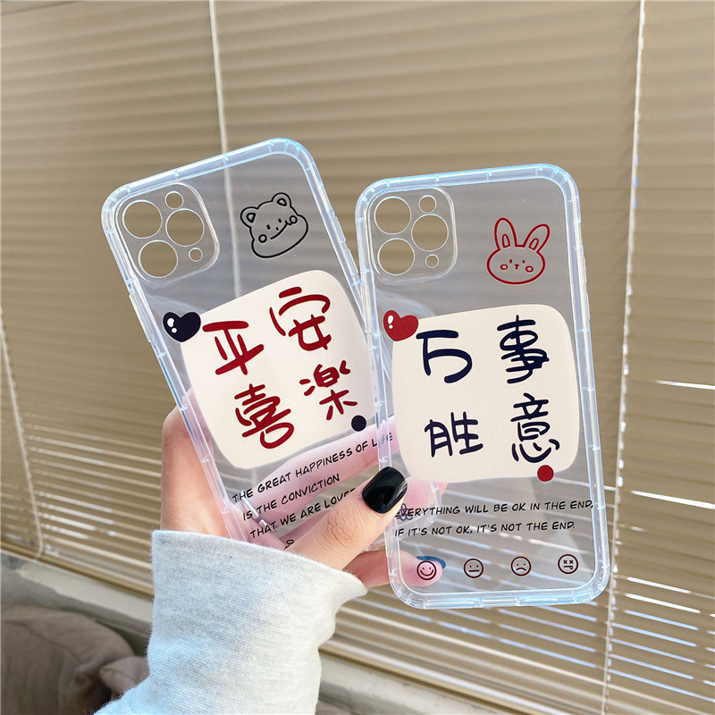 Apple 12 Transparent tpu Black Bear Head Ping An Happy Apple 12 Transparent tpu Red Rabbit Head Wando, 12Pro Transparent tpu Black Bear Head Ping An Happy 12