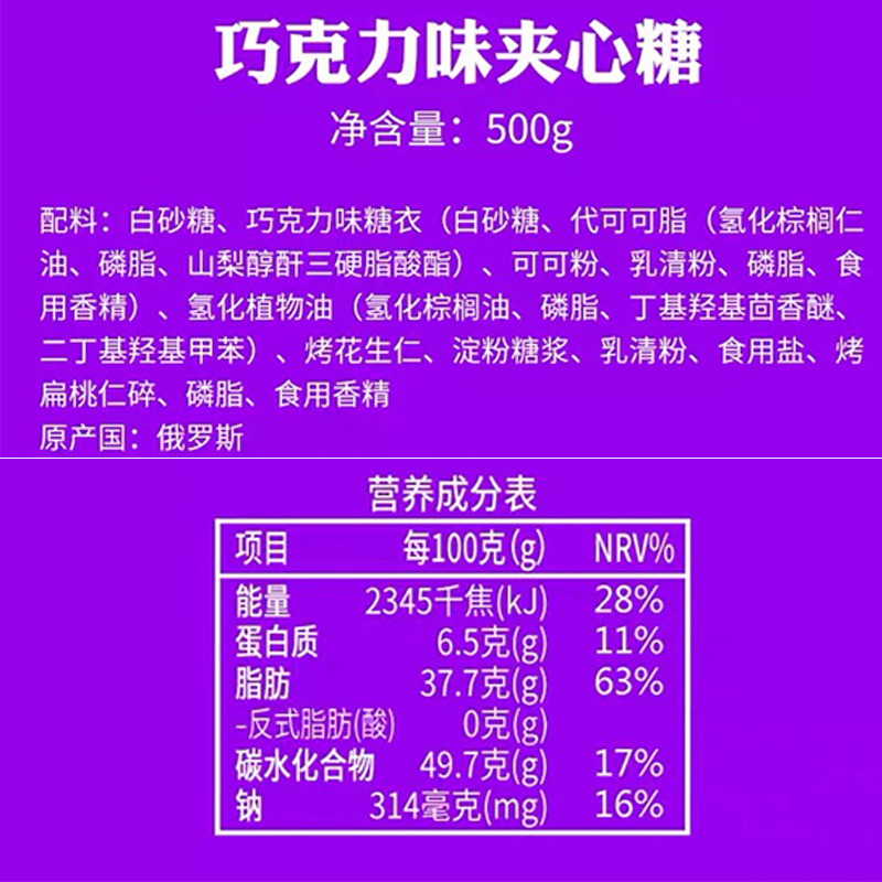 Russian Flavored Purple Peel Sugar Homegrown Peanut Chocolate Sandwich Candy 500g Wedding Delight and Sugar Zero Nuts Candy