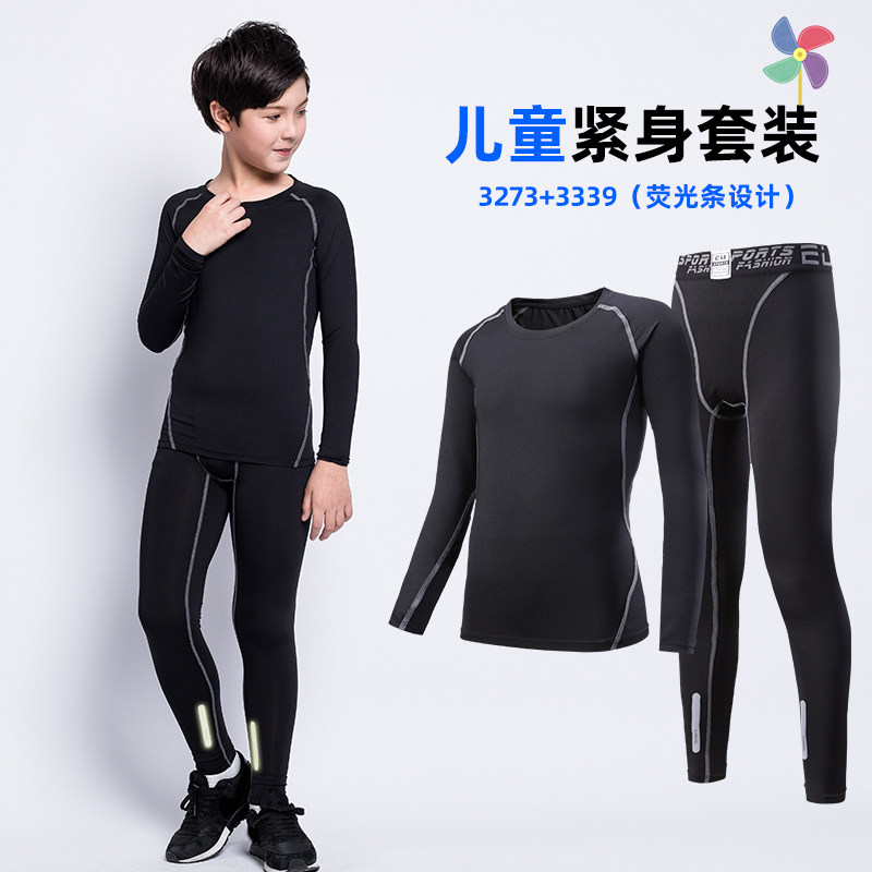 Children's fitness suit set Boys long-sleeved tights Sports training suit Autumn and winter jersey Student football suit