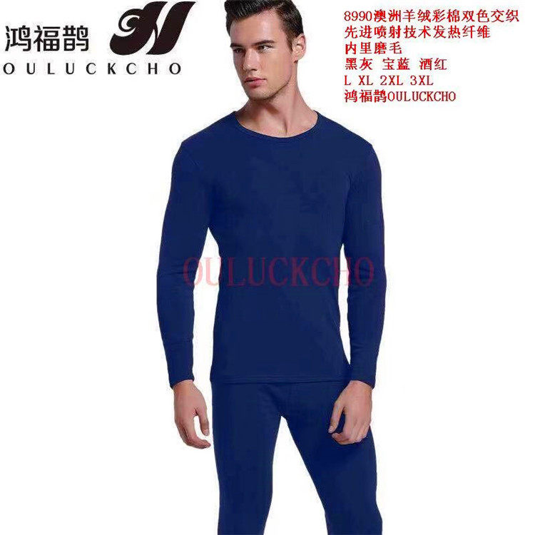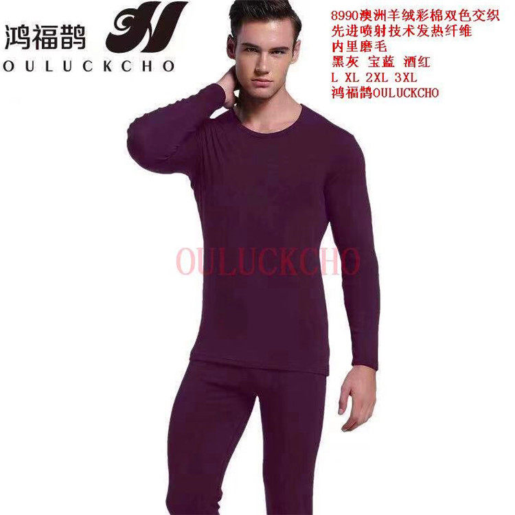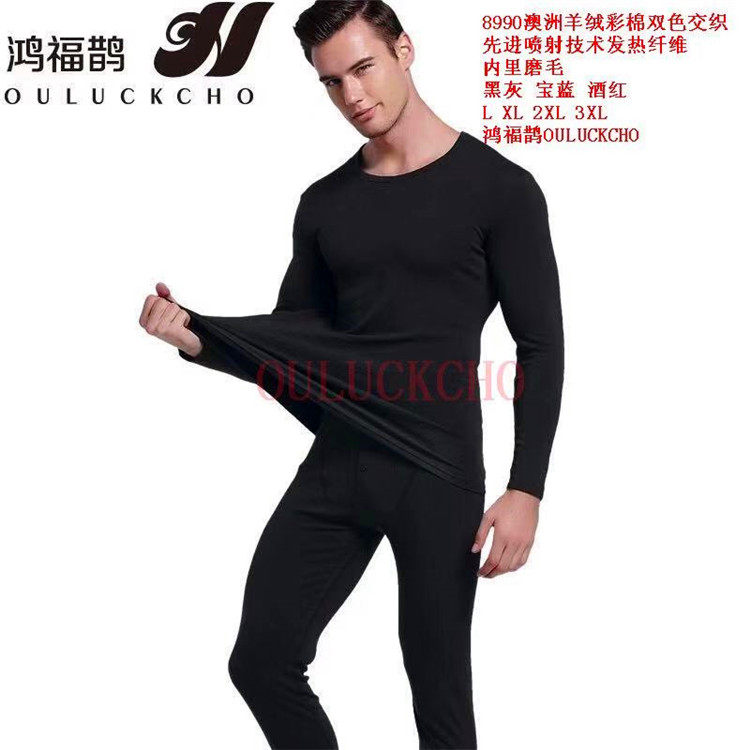 Hongfu Que autumn pants men's silk cashmere lycra cotton heating clothes color cotton heating fiber double-sided cotton wool cover