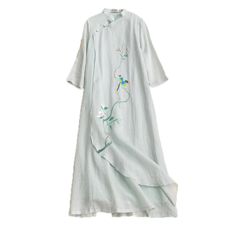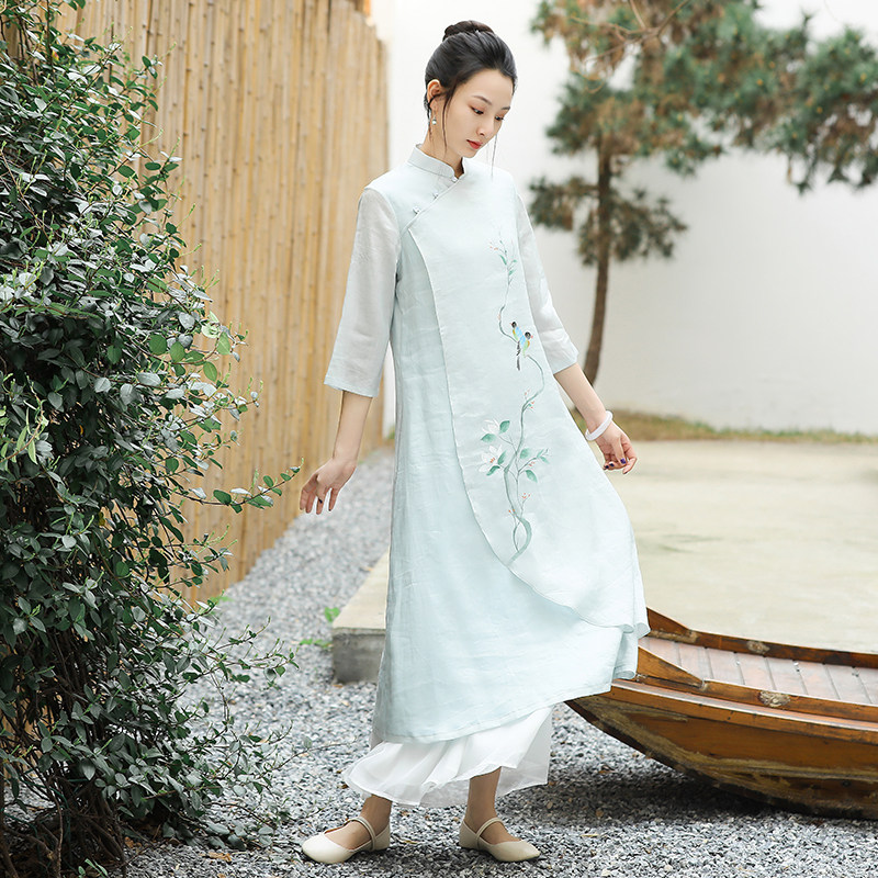 Qipao modified dress 2021 new summer Chinese style women's women's clothing ramie young model Zen tea service 698