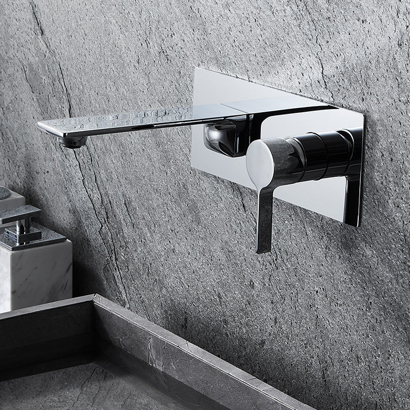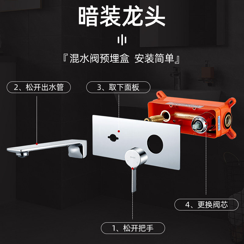 Githing to fall into wall-style concealed tap full copper hot and cold wash-face table basin embedded pre-buried wall out-of-the-face basin tap