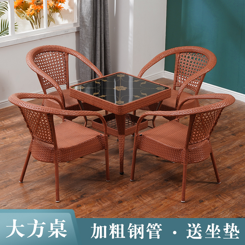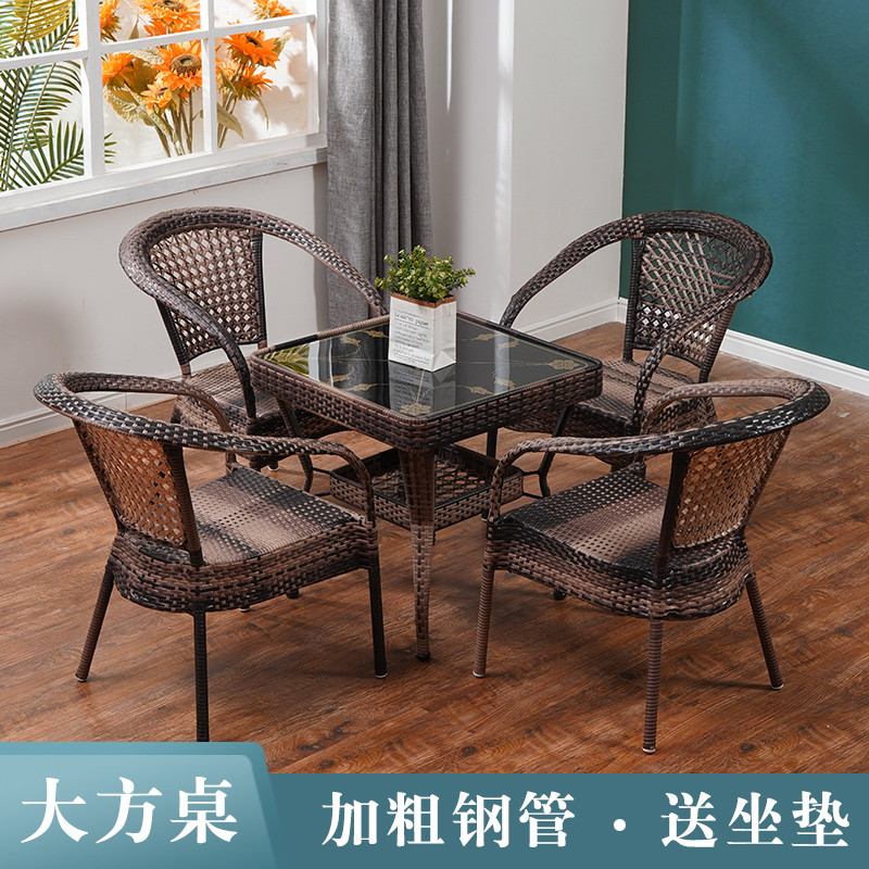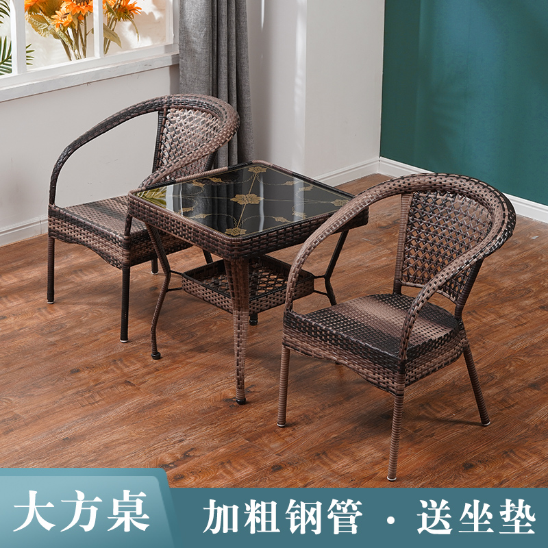 Rattan chair three-piece tea table single outdoor courtyard balcony small table and chair casual coffee table combination back chair indoor and outdoor