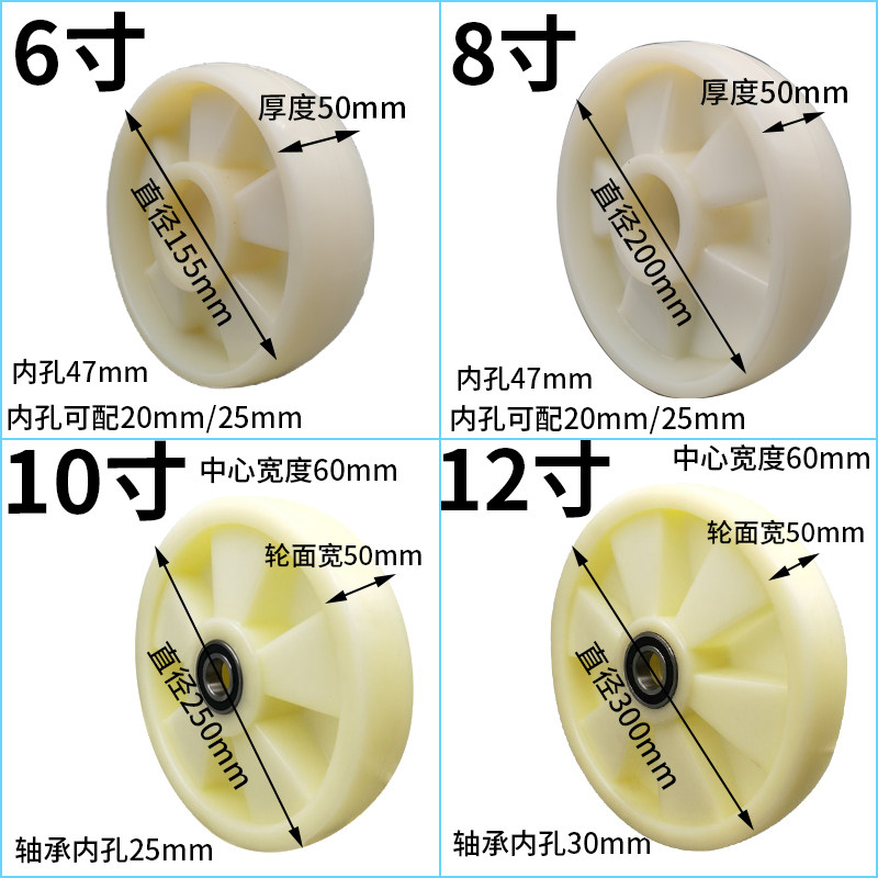 6 inch 155*50(6204 bearing bore 20mm) 6 inch 155*50(6005 bearing bore 25mm) 180*60(6304 bearing bore 20mm) 180*60(6205 bearing bore 25mm) 8 inch 200*50(6204 bearing bore 20mm) 8 inch 200*50 (6005 bearing bore 25mm) 10 inch 250*50 (6304 bearing bore 20mm) 10 inch 250* 50(6205 bearing bore 25mm) 8 inch 200*50 thickening (6304 bearing bore 20mm) 8 inch 200*50 thickening (6205 bearing bore 25mm) 10 inch 250*50 thickening (6304 bearing bore 20mm) 10 inch 250*50 thickening (6205 bearing bore 25mm) 12 inch 300*50 thickening (6305 bearing bore 25mm) 12 inch 300*50 thickening (6206 bearing bore 30mm) 175*50 (6204 bearing bore 20mm) 175*50 (6005 bearing bore 25mm) 6 inch 150*50 thickened (6204 bearing bore 20mm) 6 inch 150*50 thickened (6005 bearing bore 25mm) 8 inch thickened nylon + 70 long shaft 10 inch thickened nylon + 70 long shaft 12 inch thickened nylon + 70 long shaft