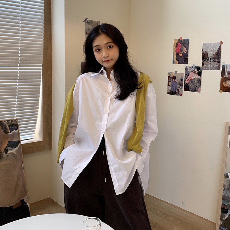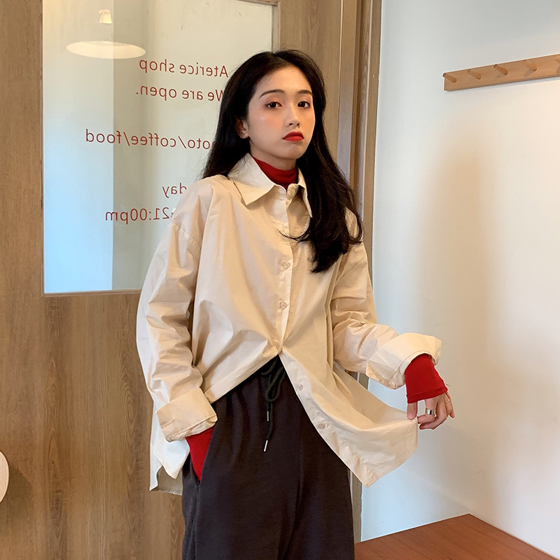 Solid color shirt women's design sense retro Hong Kong flavor shirt 2021 new spring and autumn salt department inside the stack put on clothes