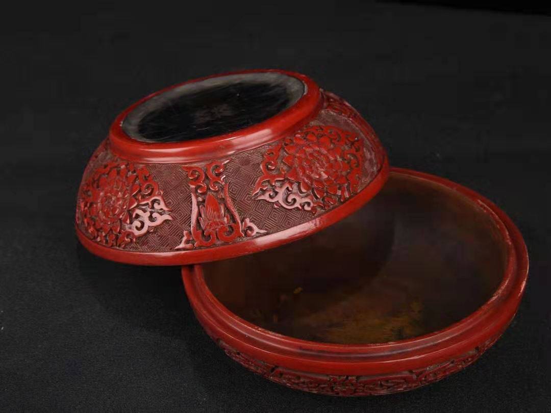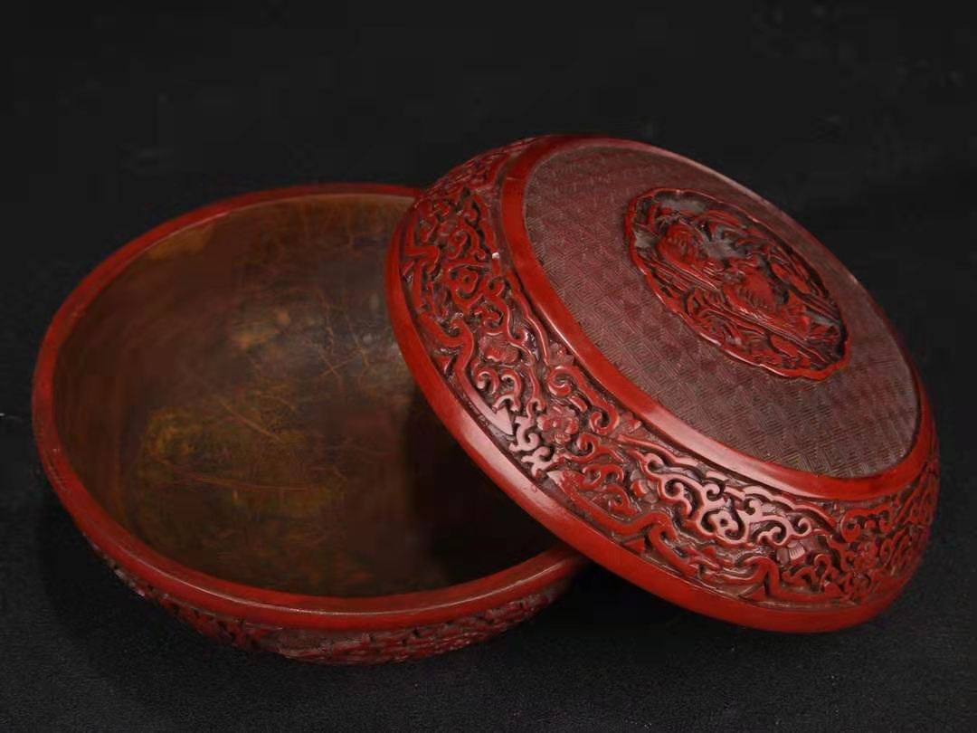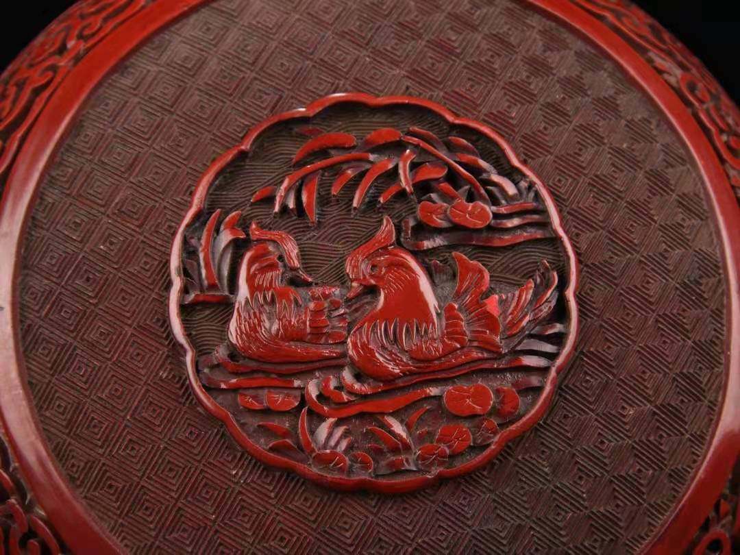 Folk Collection Old and red lacquered ware Yuanyang box diameter 17 cm
