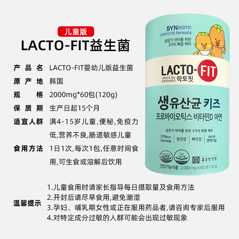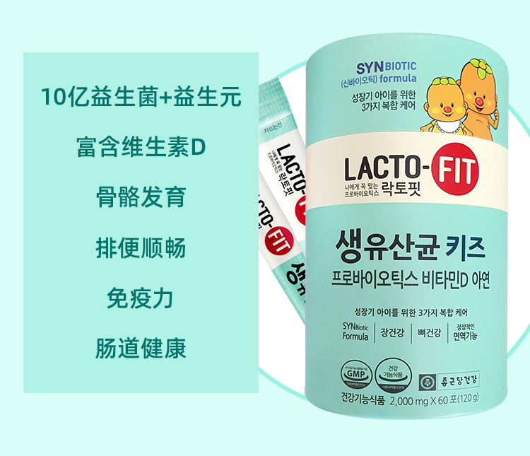 South Korea's bell root church LACTOFIT Children's teenagers 4-15-year-old probiotic conditioning gut 60 Add VD zinc
