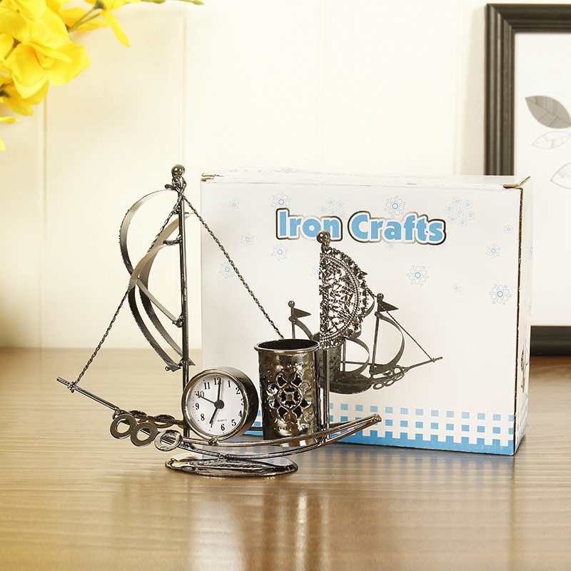 Creative Metal Craft Gift Pendulum SAILING STYLING CLOCK PEN HOLDER MULTIFUNCTION PENDULUM STUDENT GIFT BOOK HOUSE SWING PIECE ALARM CLOCK