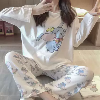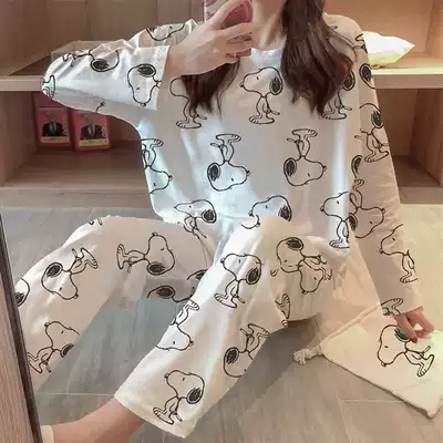 Pajamas female spring autumn cotton long sleeve thin 2021 New sweet cute cartoon Japanese cotton home clothing winter