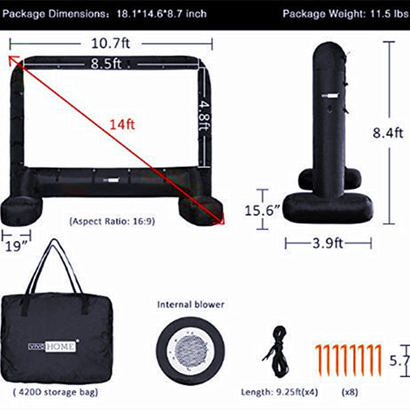 14 foot movie screen (with domestic blower) 16 foot movie screen (with domestic blower) 18 foot movie screen (with domestic blower) 20 foot movie screen (with domestic blower)