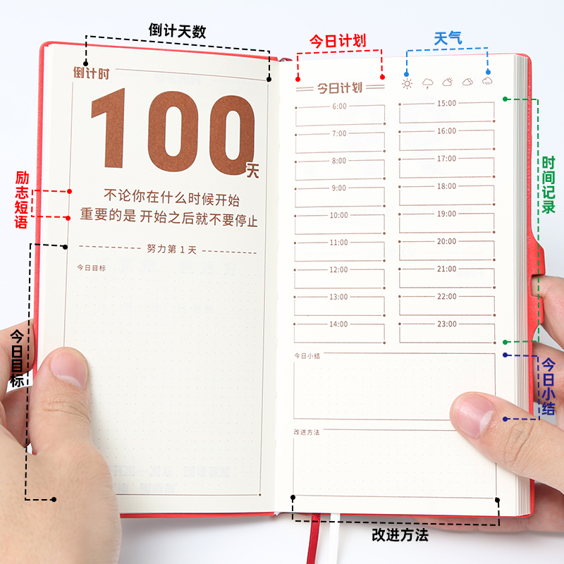 100 days Plan This Daily Time Management Schedule 2021 Carry-on Hand Ledger Small Schedule Week of Year Planning of Cowage Special ins Self-discipline Chronicle Study List Study Notes