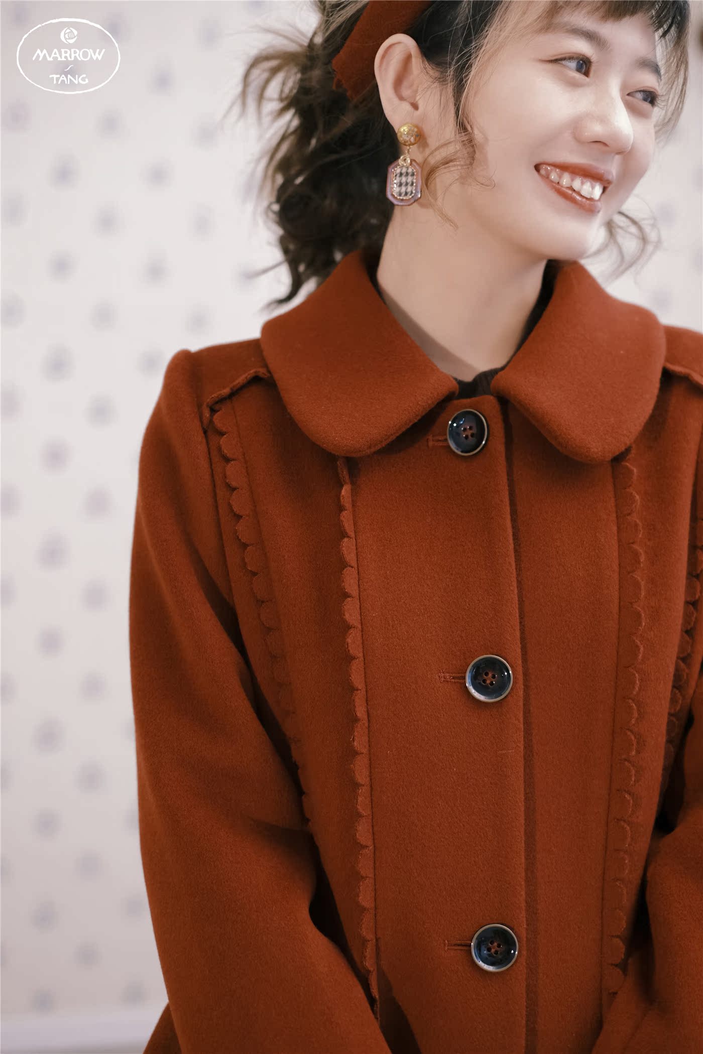 MarrowTang2021 New Chinese New Year's Shoes and Maple Leaf red caramel with iron florian lace wool with a large coat of clothing